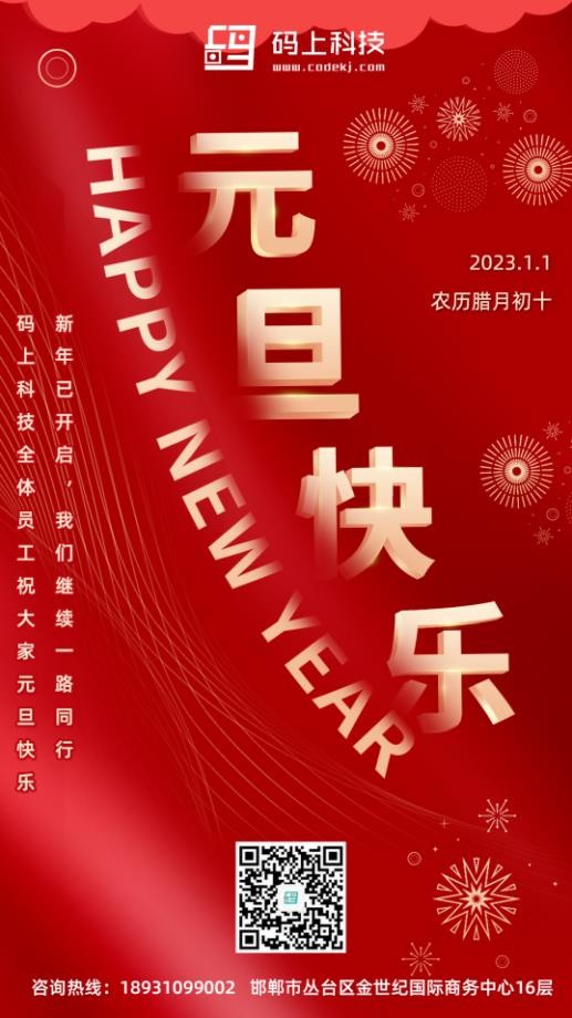 新的一年開(kāi)啟新的期望,新的期望承載新的夢(mèng)想,碼上科技希望與各位繼續(xù)保持友好合作關(guān)系,用心前行,筑夢(mèng)遠(yuǎn)航,攜手共創(chuàng),輝煌佳宗,愿我們今年比去年更輝煌,事業(yè)更順利路越走越好!2023新的一年,我們一起共輝煌!