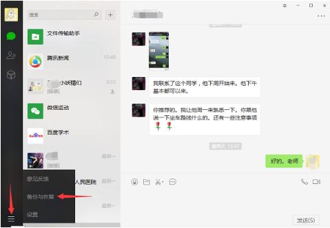 第一步: 登錄電腦版微信,進入電腦版微信聊天頁面,點擊左下角的【備份與恢復】。