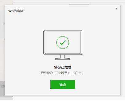 第四步:確認備份文件后,微信開始備份聊天記錄。備份完成后電腦端和設備端均會提示備份已完成。