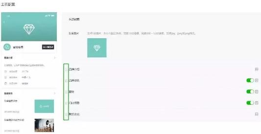 微主頁包括「品牌介紹」、「主營產品」、「服務」等模塊,現支持自定義順序。進入「微主頁」-「主頁配置」,點擊左側區域拖動即可。