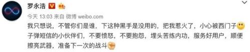 羅永浩也于今日下午表示:“我只想說,不管你們是誰,下這種黑手是沒用的,把我惹火了,小心被西門子。子彈短信的小伙伴們,不要憤怒,不要抱怨,埋頭苦練內功,服務好用戶,順便擦亮武器,準備下一次的戰斗。”