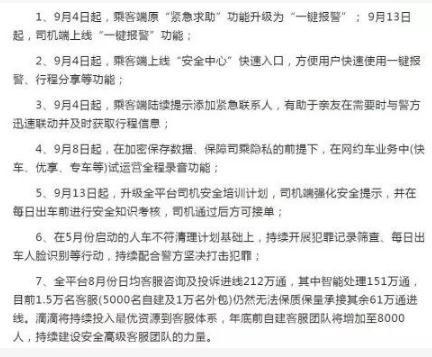 這次樂清女孩遇害案發(fā)生后,滴滴試運(yùn)營全程錄音;乘客端原“緊急求助”功能升級(jí)為“一鍵報(bào)警”;司機(jī)端強(qiáng)化安全提示,并在每日出車前進(jìn)行安全知識(shí)考核,司機(jī)通過后方可接單。