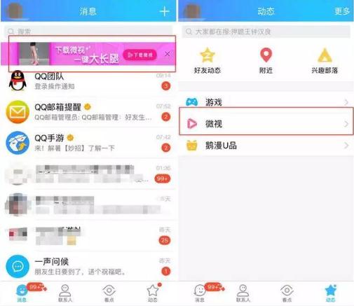 微視則主要在 QQ 上推廣。之后在手機 QQ 的頁面上都能看到無處不在存在微視的廣告。