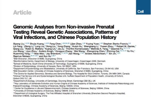 發表于《細胞》的這次成果, 是華大研究團隊在大規模人群隊列研究的一次嘗試, 取得顯著的成果。研究小組攻克包括方法學在內的種種難題,開發了適用于此類數據的分析方法和算法,并希望由此建立一套基于超低深度測序數據進行組學大數據研究的方法和策略,進一步發揮 NIPT 數據的價值,最終在《細胞》發表了題為《無創產前基因組學研究揭示多種復雜性狀的遺傳關聯,病毒感染模式以及中國人群體歷史》的研究成果。