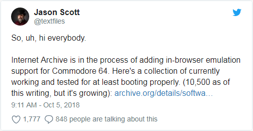 互聯(lián)網(wǎng)檔案館是個(gè)懷舊的好去處,網(wǎng)站總監(jiān) Mark Graham 表示,網(wǎng)站收錄了不斷增長的內(nèi)容,其中包括超過四百萬本書籍和 3390 億個(gè)網(wǎng)頁。不過近日,該網(wǎng)站又推出了 Commodore 64 模擬器,理論上里面的每個(gè)軟件(包括幾款經(jīng)典游戲)都經(jīng)過了廣泛的測試,可以像往年一樣正常工作。