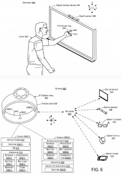 2016 年,微軟一項正在研發的智能指環專利被公開了,當時的專利描述顯示智能指環內置曲面的傳感器, 可識別手指指關節擺動。現在一項申請于 2018 年 6 月 11 日的智能指環型可穿戴設備觸控檢測專利再度于近日被美國專利局公開,該專利顯示了一個能夠與大屏幕顯示屏等多種設備互動的智能指環,其可以通過多重傳感器來識別用戶的之間運動手勢和壓力。