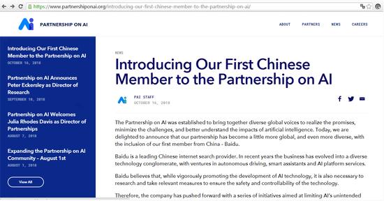 PingWest 品玩 10 月 17 日訊,引述網易新聞消息,美國時間 10 月 16 日,Partnership on AI 在最新公告中歡迎首位中國新成員百度加入,并稱此次合作是“建立一個真正全球性合作機構的重要一步”,未來百度將與 Partnership on AI 中的其他成員一同致力于 AI 研發標準和全球性 AI 政策制定。