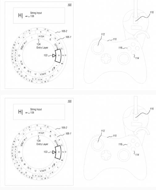 微軟為這些設備提供的替代輸入解決方案將是一個徑向界面,讓消費者可以使用游戲手柄拇指輕松選擇字母,游戲手柄可以旋轉以移動光標并選擇不同的字符。此外,該專利還提到了其他類型的輸入,包括語音,手勢,拇指手勢,以及通過旋轉眼球運動進行的“凝視”。