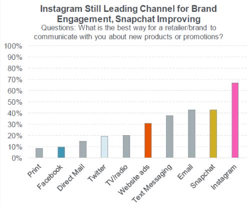 派杰分析師在一份報告中表示,“Instagram 繼續保持在銷售方面的主導地位,因為相比其他的渠道,絕大多數青少年更喜歡品牌通過 Instagram 聯系他們。”