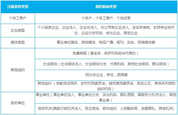 1)若組織機構代碼證上“機構類型”為:企業(yè)法人、企業(yè)非法人、請選擇“企業(yè)類型”進行登記;