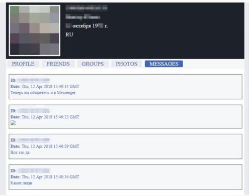 BBC 就此與 5 名俄羅斯 Facebook 用戶取得了聯(lián)系,證實(shí)被上傳的私人信息是屬于他們的。其中一名用戶的被盜信息是最近度假時(shí)的照片,另一名用戶與 Depeche Mode 樂隊(duì)演唱會(huì)有關(guān)的聊天記錄被盜,還有一名用戶則是抱怨自己女婿的相關(guān)信息被公布了出來(lái)。此外,一對(duì)戀人之間的親密通信也遭到泄露。