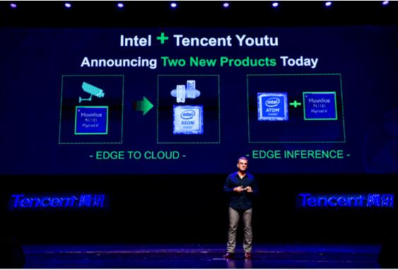 騰訊優圖 AI 攝影機是基于英特爾 Movidius Myriad 2 VPU 的智能攝像頭,在前端完成人臉檢測,特征提取等 AI 任務,由云端英特爾至強處理器來完成熱點,動線等數據分析,可以廣泛用于智慧零售,安防,智能樓宇等場景;優圖盒子是基于英特爾 ApolloLake 和 Movidius Myriad X 平臺的邊緣計算 AI 盒子,能在邊緣獨立完成 AI inference,據了解,Myriad X 在同樣功耗條件下能提供 Myriad 2 十倍的深度神經網絡(DNN)性能。