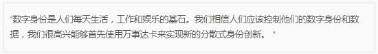 在戰略合作中,微軟和萬事達卡正在一項服務,該服務將“允許個人使用他們的個人設備以他們的方式進入,控制和共享他們的身份數據”。兩家公司聲稱這將簡化和簡化利用金融,電子商務,政府和數字服務的過程。