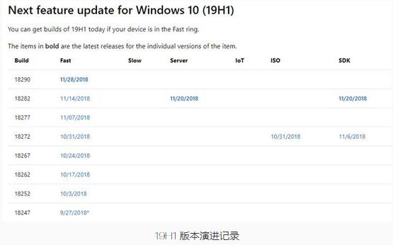 按計劃,19H1 版本號為 v1903,預計明年春季轉為正式版,成為 Windows 10 自 2015 年發布以來的第八個正式版和第七次功能性迭代。
