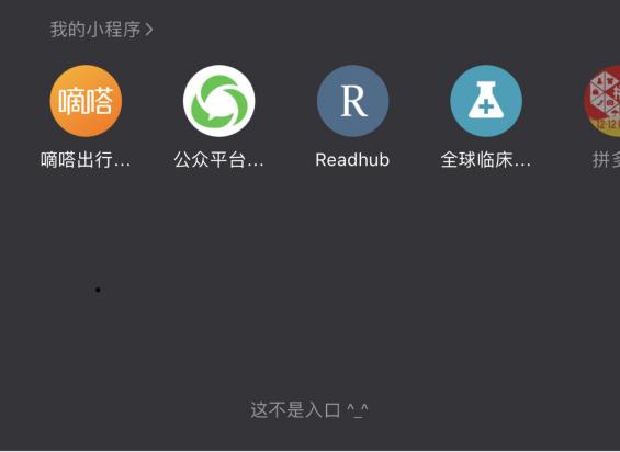 后來(lái)微信還是慢慢給小程序增加了一些「入口」,比如在聊天頁(yè)面下拉可以調(diào)出用戶最近使用過(guò)的小程序。即便如此,微信還不忘跟大家開(kāi)個(gè)玩笑,當(dāng)你按住屏幕,把聊天頁(yè)面拉到最底端時(shí)會(huì)發(fā)現(xiàn)一行小字,「這不是入口 ^_^」