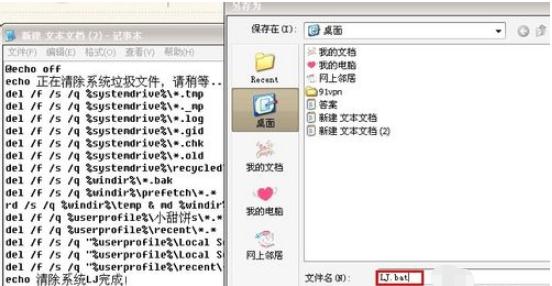 把代碼復制到一個文本文檔里面、、然后在另存為文件名修改成LJ.bat。