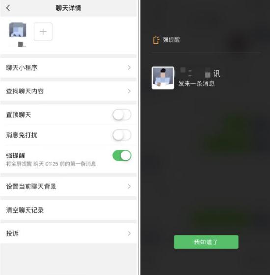 設置成功后,該好友 3 小時內發布的消息,將強制彈出并占據微信整個界面,其震動提醒用戶好友來消息。