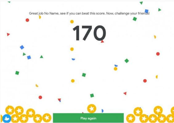 例如小編在游戲時候遇到的問題是:“2018 年搜索次數最多的繪畫是什么?”以及“美國哪個州搜索‘mega millions’最多?”,玩家只有 10 秒的時間來回答每個問題,一旦做錯三道題目這個比賽就會結束,之后就會公布的得分。