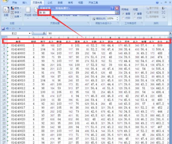 在原來(lái)工作表中選中第一行,也就是光標(biāo)選中你需要每頁(yè)都打印的表頭部分。
