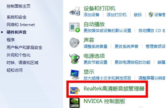 彈出頁面如圖所示,然后選擇“Realtek高清晰音頻管理器”