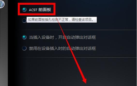 在彈出的面板里我們點擊“AC97前面板”,重新裝載音頻裝置,