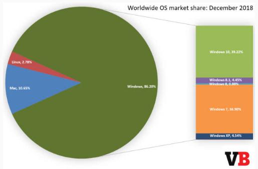 這意味著現(xiàn)在運(yùn)行微軟這款最新操作系統(tǒng)的 PC 電腦數(shù)量比運(yùn)行其他版本操作系統(tǒng)的 PC 電腦都多。這一里程碑是微軟結(jié)束 2018 年的一個(gè)極好方式,盡管該公司肯定希望 Windows 10 的市場(chǎng)份額不要花這么長(zhǎng)時(shí)間才超過(guò) Windows 7。