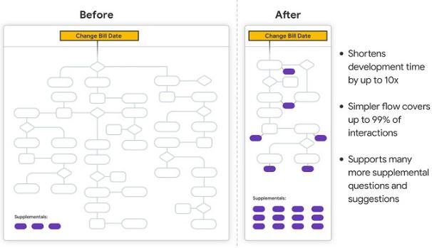 開(kāi)發(fā)人員還可以將(通過(guò)交互提供的)數(shù)據(jù)結(jié)果,導(dǎo)出至虛擬代理(例如 DialogFlow)。此外,建模代理將能夠處理 99% 的交互,準(zhǔn)確識(shí)別即將超出其范圍的工作,并轉(zhuǎn)交給實(shí)時(shí)代理。