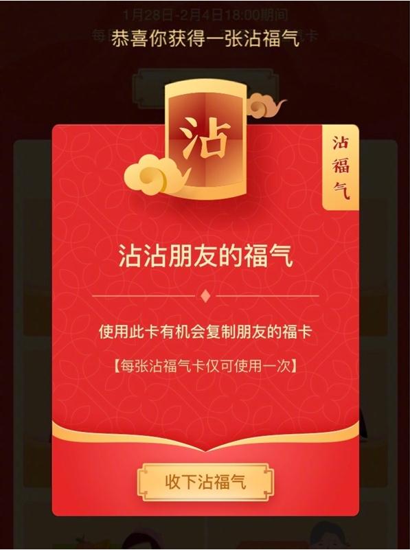 就在剛剛,支付寶上線了一個(gè)小道具叫“沾福氣”,作用非常神奇:可以隨機(jī)復(fù)制一張好友的福卡。