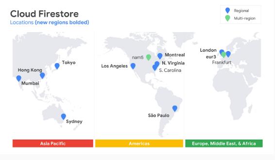 Google宣布Cloud Firestore文檔數據庫新進展 覆蓋10個新區域
