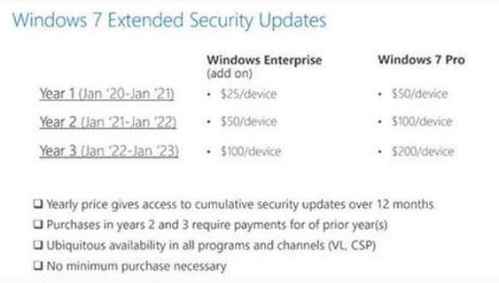 Windows7系統(tǒng)將于明年1月14日結(jié)束免費(fèi)的擴(kuò)展技術(shù)支持服務(wù),也就是不再對個人和普通企業(yè)用戶分發(fā)任何安全補(bǔ)丁。