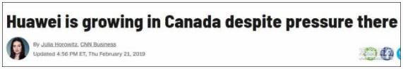 CNN 新聞網認為,盡管存在壓力,華為在加拿大持續壯大。