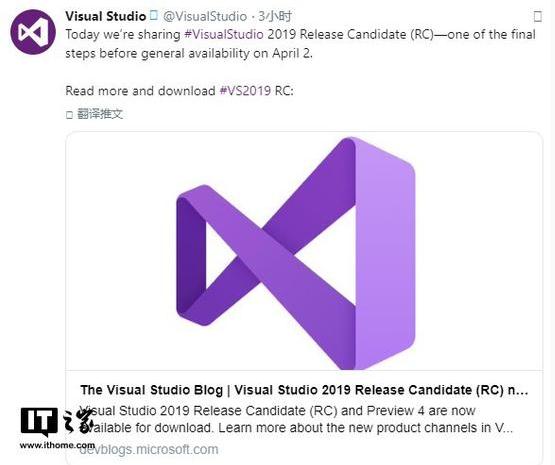 今天,微軟正式公布了 Visual Studio 2019 首個候選發布版(Visual Studio 2019 RC 版),這一版本標志著 Visual Studio 2019 開發基本接近尾聲,正式版本將在今年 4 月 2 日的微軟 Visual Studio 線上發布活動上公布。