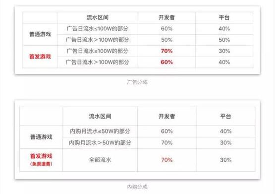 今年 2 月,抖音正式上線了小游戲,并且從廣告和內購兩方面為小游戲的開發者提供了完備的商業支持體系。在字節跳動的平臺上首發的小游戲除了獲得流量上的扶持之外,還擁有首發期間免除渠道費的特權及更加優惠的分成比例。從現有的分發路徑來看,字節跳動對小游戲的扶持同樣也適用于原生 App 游戲。