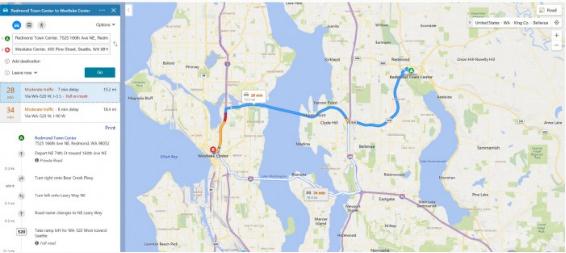 必應地圖添加了一項新功能,可根據路況分配路線的特定顏色。例如,指定為橙色的路線意味著該區域的中等交通量。紅色路線表示交通繁忙,而藍色指定為沒有交通擁堵的道路。