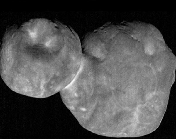 這張照片是“新視野號”在 1 月 1 日近距離拍攝的,它的直徑 33 公里,呈二裂片結構,類似一個微紅色雪人。