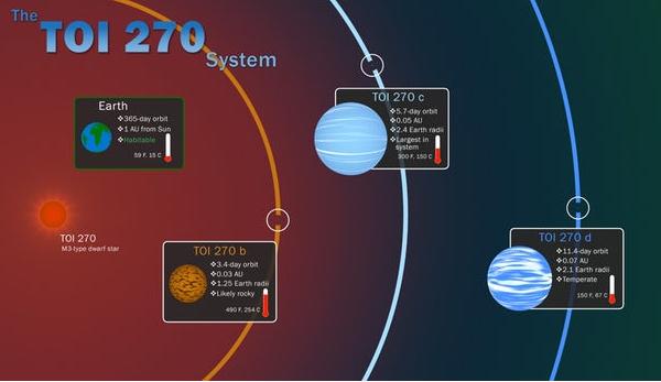 在審查數據后,天文學家得出的結論是,三顆系外行星正在圍繞附近的恒星 TOI 270 進行軌道運動,因為它是 TESS 自開始科學運作以來已經確定的第 270 個感興趣的天體。