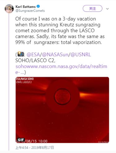 Battams 發推文稱:“全部汽化。” 但在隨后的推文中,Battams 解釋說這些彗星并不一定能擊中太陽。當它們靠近太陽時,它們會瞬間消失,只會留下了一道發光條紋。