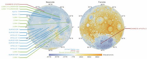 2019 年以前,人類在 60 年來的月球探測歷程中成功實施了 20 次月面軟著陸,全部位于朝向地球的月球正面。探測器下降軌跡和著陸點位置可以通過地面設備進行測量。