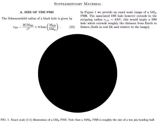 所以,目前觀測到的 P9 的質量范圍是合適的,它可以是原初黑洞。如果 P9 的質量是 5 倍地球質量,那么作為原初黑洞,它的半徑大概是 45 毫米——差不多與一個網球一樣大。