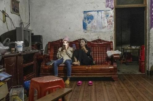 銅關村的兩名年輕姑娘正在拿智能手機連接網絡看視頻。