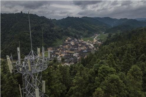 建設在山頂的 4G 基站能夠覆蓋整個銅關村。