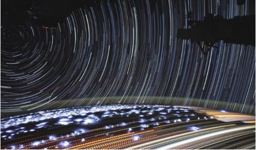 通常,一張顯示如此多的星體活動的延時攝影圖像需要花一整晚的時間來捕捉,但是由于國際空間站繞地球運行的速度,它只用了 11 分鐘。這是空間站經過非洲大片地區時捕獲的約 400 張單獨照片的結果。