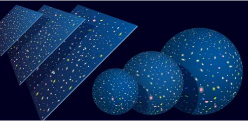在最新論文中,研究者討論的是整個宇宙空間的形狀,他們認為整個宇宙有 99% 以上的可能性是一個封閉的三維球面。