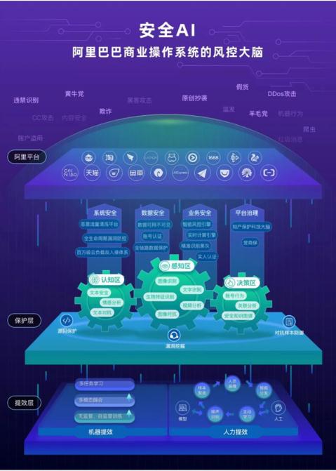 在今年,阿里巴巴的“風控大腦”首次在天貓雙 11 場景中全面應(yīng)用安全 AI 能力,運用機器學習、神經(jīng)網(wǎng)絡(luò)等形成的 1258 個算法模型,打通過去分散的數(shù)據(jù)、風險類型,實現(xiàn)自動決策、智能對抗、實時處理,精準識別黑灰產(chǎn)行為,保障商家和平臺的補貼紅包能夠真正惠及消費者。