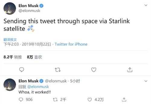 馬斯克發(fā)文稱:“通過 Starlink 衛(wèi)星發(fā)送了這條推文。”隨后,他又發(fā)布了一條稱,“哇,它成功了。”