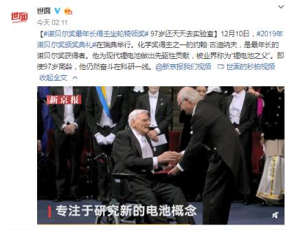 古迪納夫超越去年96歲時獲得諾貝爾物理學獎的阿瑟·阿什金,刷新了諾貝爾獎得主的最高齡記錄,可謂一份遲來的最高榮譽。