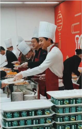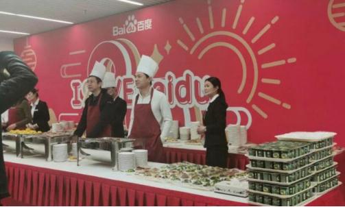 百度創始人李彥宏 Robin 和 CTO 王海峰化身百度員工食堂大廚,負責給大家分發肉餅。