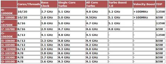 OC3D 網(wǎng)站也報道了這件事,實際上他們報道的內(nèi)容跟我們之前報道的是一樣了,單說內(nèi)容的話不需要再重復(fù)一遍了,他們自己做的一個表格也能很清晰地看出十代酷睿處理器從高端的酷睿 i9 到低端的酷睿 i3 的變化。