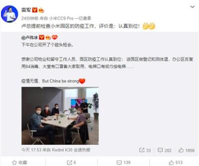 近日小米集團副總裁、Redmi品牌總經理盧偉冰在微博透露,在公司開了個碰頭會,并對物業和留守工作人員表達了感謝。不出意外的話這也就預示著這就是在為小米10系列的發布做準備。更關鍵的是,雷軍轉發了盧偉冰的這條微博稱:“盧總提前檢查小米園區的防疫工作,評價是:認真到位!”并且當有網友問道:“雷總該檢查那啥了”時,雷軍回復道:“我2/3再去檢查一下。”根據以往在發布前一周開始正式預熱的習慣,我們推測,小米10的發布會可能并不會受到影響,且發布時間很可能就在此前預計的2月10日。