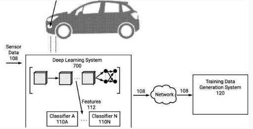 因此,卡帕西解釋了他的專利方法,在傳輸之前就對源數據進行分類:“示例方法包括接收傳感器并將神經網絡應用于傳感器數據。將觸發器分類器應用于神經網絡的中間結果,以確定傳感器數據的分類器評分。根據至少部分分類器得分,決定是否通過計算機網絡傳輸至少部分傳感器數據。一旦確定為陽性,傳感器數據就會被傳輸并用于生成訓練數據。”